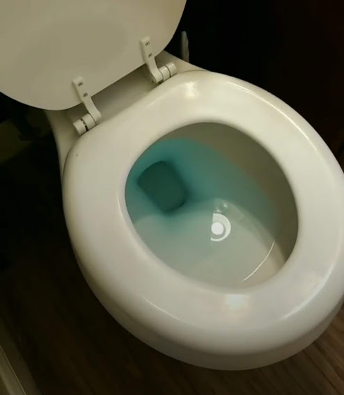 You can actually purchase stickers that are designed to go inside the bowl of the toilet. These aren’t a bad option, however the ones that I’ve seen in practice tend to peel, which may not be great for the septic system and can also lead to some cleaning difficulties for the housekeepers.